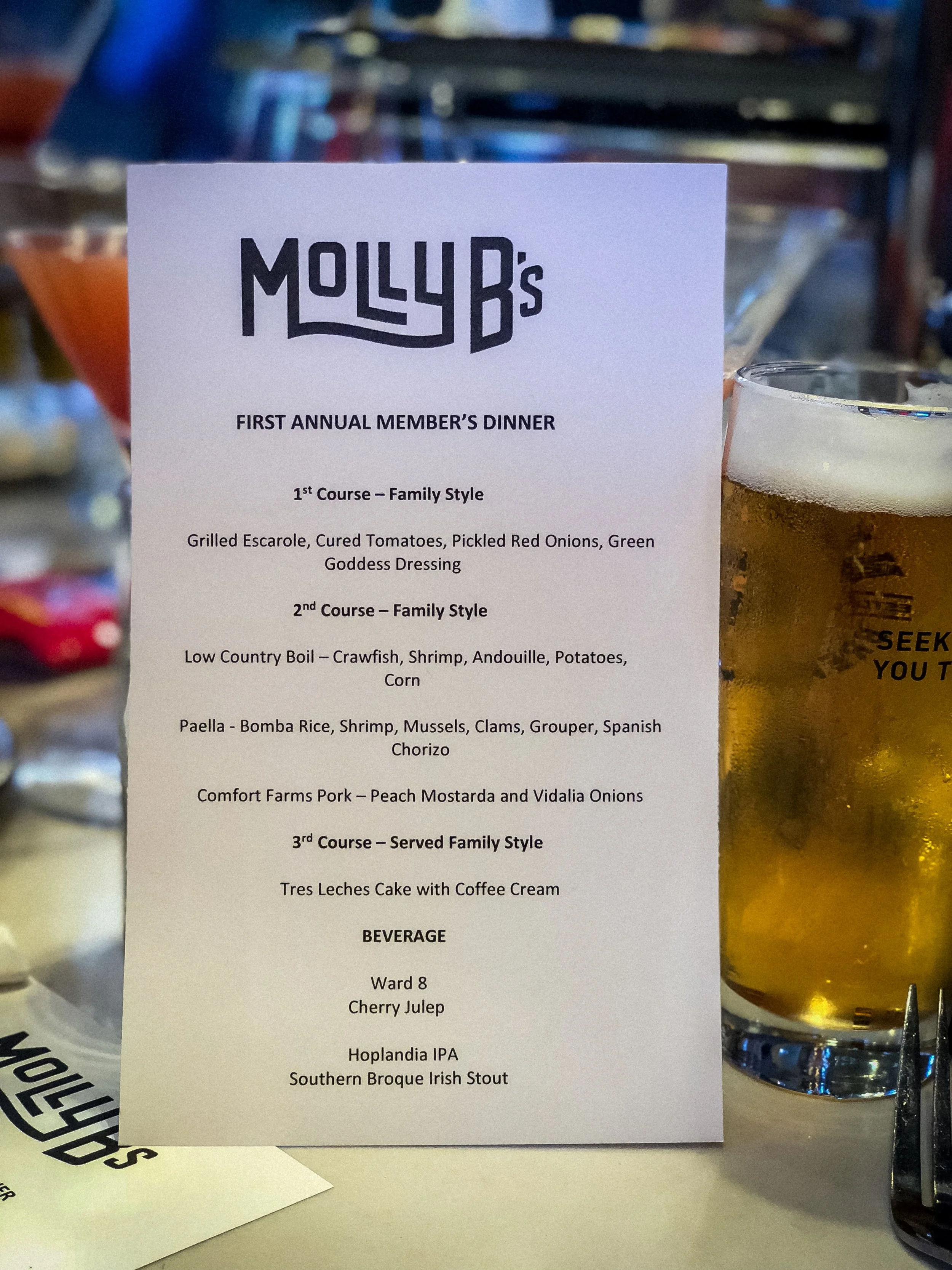Followed by a Low Country Boil, Paella, Pork and Tres Leches Cake with Coffee Cream. The drinks were Ward 8, Cherry Julep, Peach Mule, Hoplandia IPA and a Southern Broque Irish Stout.